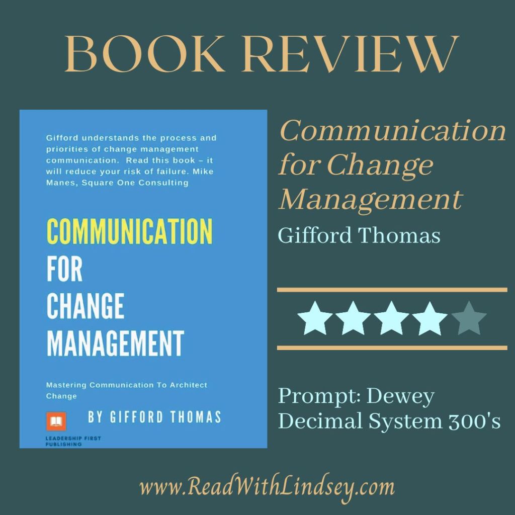 I chose Communication for Change Management for the Booklist Queen reading challenge prompt “a Dewey Decimal System: 300’s book”. The 300’s section is classified as Social Sciences with subcategories including anthropology, statistics, political science, economics, law, public administration, education, commerce, and customs/folklore. This nonfiction section is a wealth of knowledge but is not something most casual readers search out unless looking for help with a specific challenge. I would suggest walking through this section the next time you visit the library – there are some great books and I’m sure you’ll find your next amazing read in these stacks!