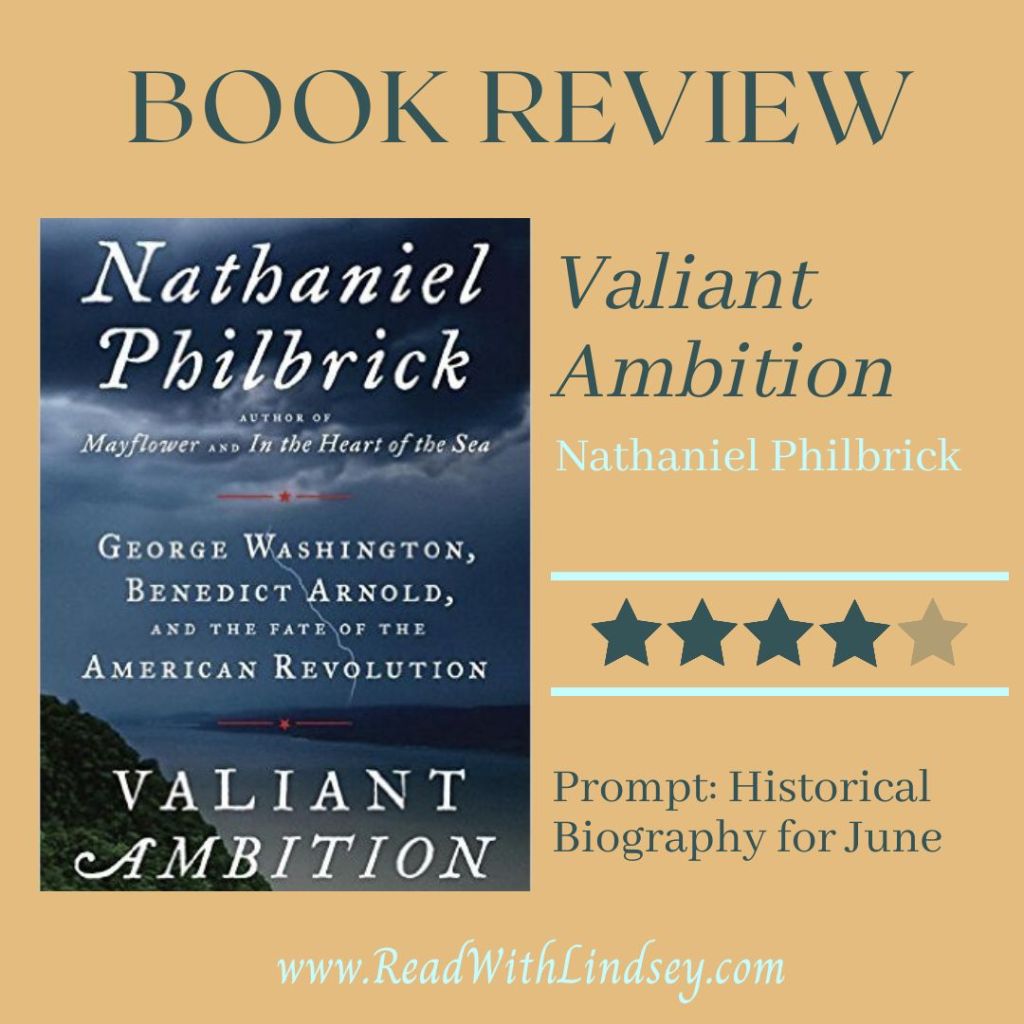 I give Valiant Ambition 4 out of 5 stars. As with most books about historical events, this book read at times like a textbook, and I struggled to keep track of the people and events. However, I appreciated the detail and the way Philbrick turns the material into a narrative instead of a list of facts and events. I also learned several new aspects of both Arnold and Washington’s histories, as well as new facts about the Revolution in general.