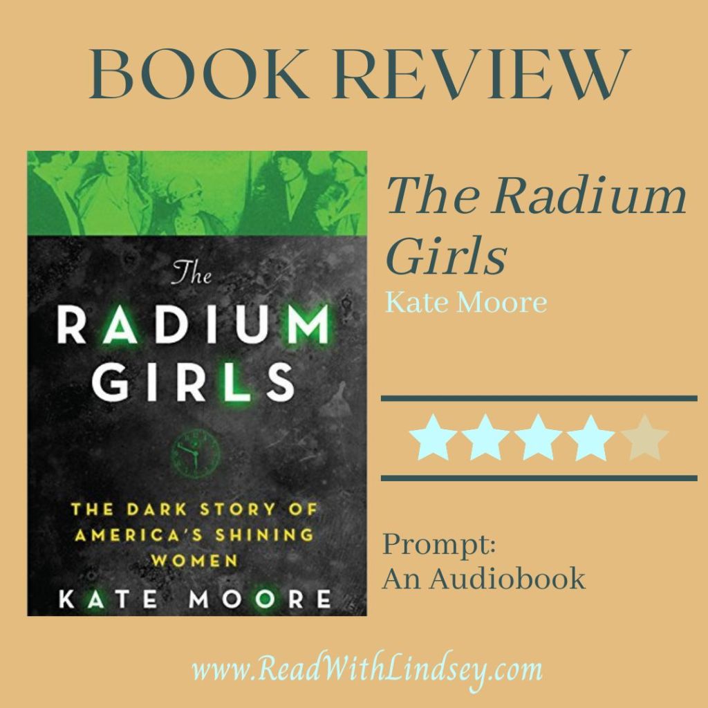 I chose The Radium Girls for the Booklist Queen Reading Challenge prompt “An Audiobook”. If you’ve been following the blog for long, you’ll know I listen to quite a few audiobooks each month. My current ratio tends to hover around 40-45% audiobooks, 55-60% print books (ebooks included). This particular book was available for free with my Audible Plus subscription. Given that this book was a 2019 award winner from several sources, it has been in my TBR list for a while! I also chose this one because of it’s link to a movie that just hit the theaters – Oppenheimer. The work of both The Radium Girls and the Manhattan Project fall in the same time period between the World Wars. It wasn’t until the Manhattan Project scientists studied the medical tests and bodies of these women that they fully understood how dangerous their own discoveries could be. These women are the reason for so many precautions and occupational safety regulations still in place today. While the story of these women was largely hidden away from public view, this book documents their fate and brings their lives the honor they so rightly deserve!