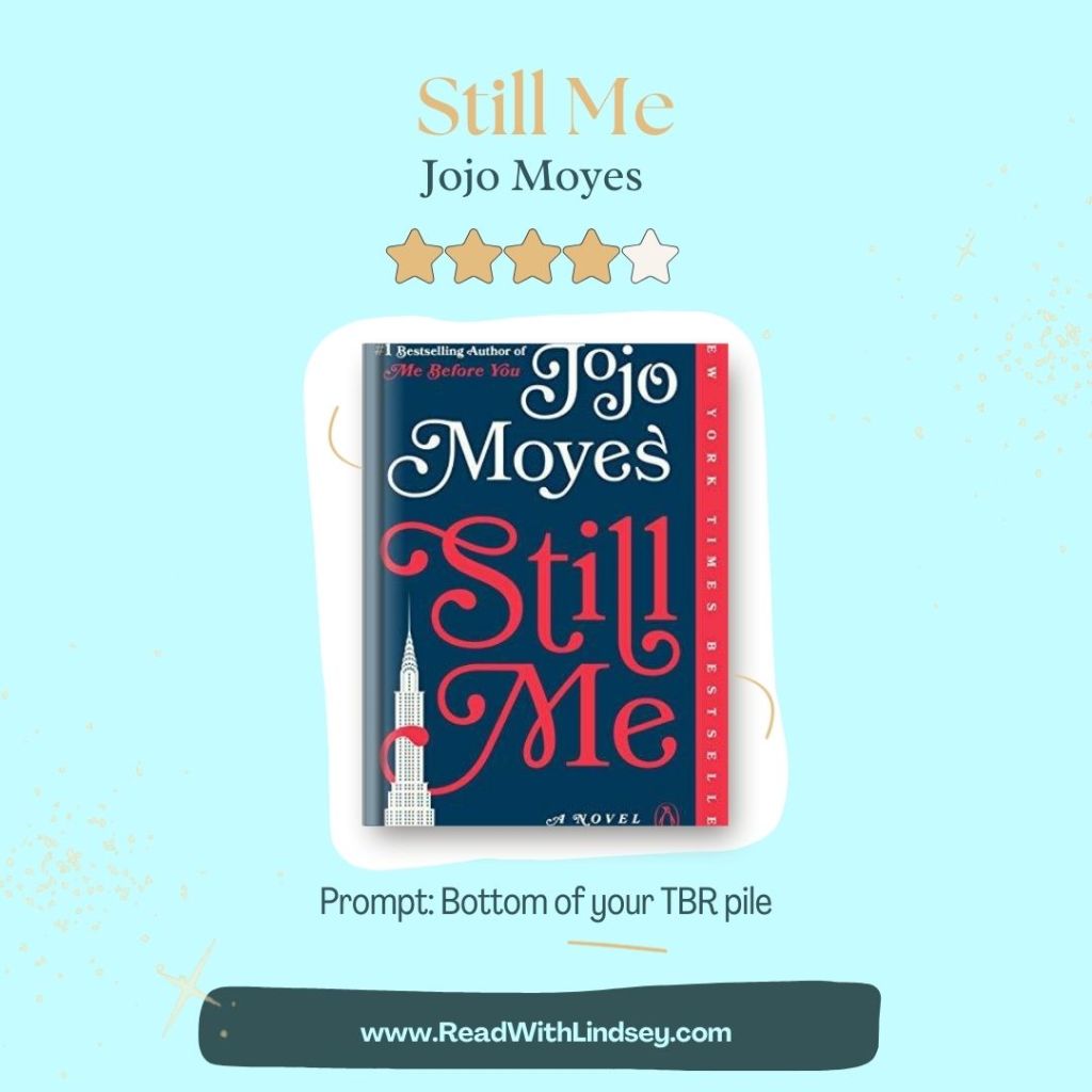 I give Still Me 4 out of 5 stars. I read the first two books in this series in 2022 and rated them 5 and 4 stars each, respectively. I love the vulnerability and flaws Moyes writes into Louisa’s character making her realistic. She is a character I want to be best friends with! However, I felt like some of the relationships shown in this novel were unnecessary and felt contrived only for the drama. I also felt like the characters of Joshua Ryan and Leonard Gopnik could have been better developed – some of their decisions felt out of left field and I couldn’t connect with their characters. However, I loved the inclusion of so many landmarks and traditions famous in NYC!
