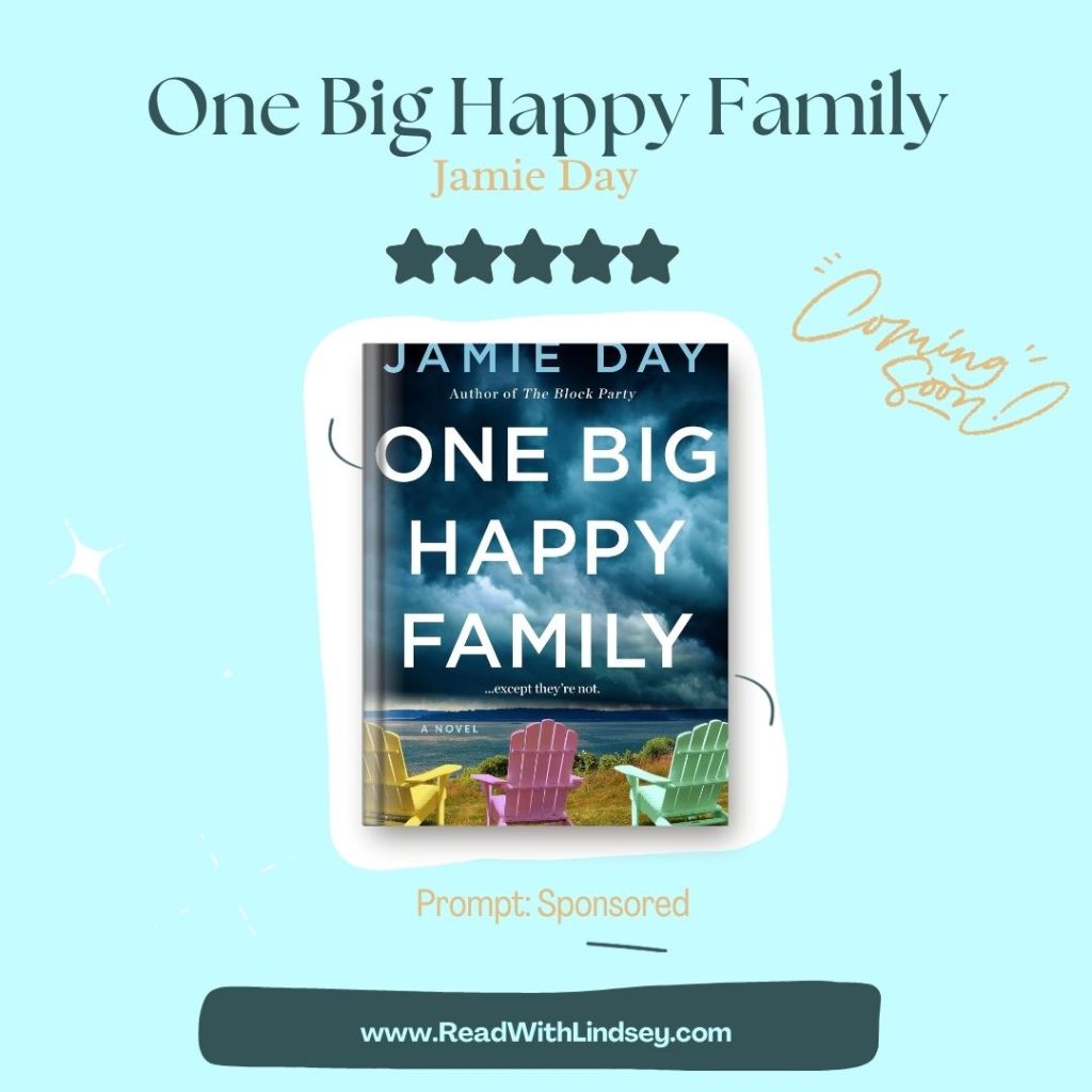 Similar to the cover of her debut novel, One Big Happy Family shows a group of Adirondak chairs set on a cliff with the storm coming in. The vibrant colors and drama they invoke drew my attention immediately. I knew I had to read this one once I read the publisher’s blurb – you are going to love this novel!