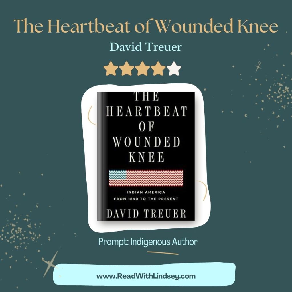 I chose The Heartbeat of Wounded Knee for the Read With Lindsey Reading Challenge prompt “Indigenous Author”. We have actually read quite a few works by indigenous authors this year including Code Talker. If you are looking to dive into some of the origin stories and religious texts mentioned in this work, I would suggest trying Dine Bahane’: The Navajo Creation Story. It was the required reading in that college course I took and helped me understand the connection between nature and spirituality for the Navajo – something that the government has never understood.