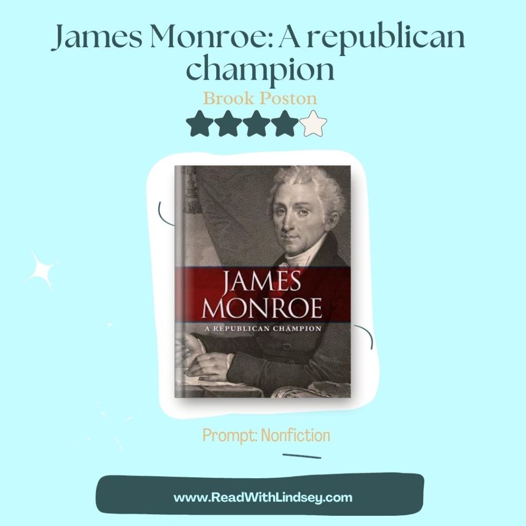 I give James Monroe: A republican champion 4 out of 5 stars. Like some of the other texts we have encountered recently in our quest to learn more about our early presidents, this book became hard to follow and jumped around a bit. It also felt like some topics received a disproportionate amount of attention, while others were moved through quickly. I also found that this book didn’t capture my attention like some others we’ve read. With that said – it may simply be that my mind is geared more towards fiction at this time.