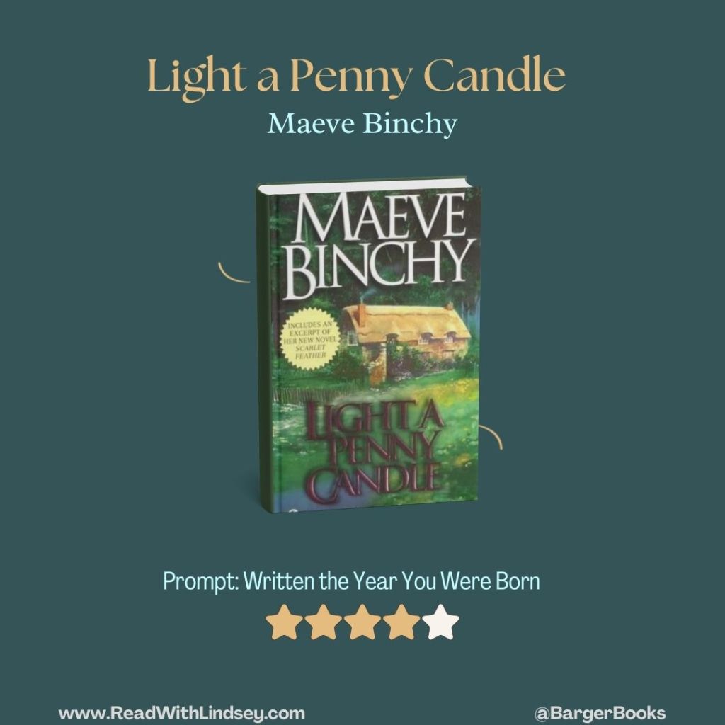 I chose Light a Penny Candle for the Read With Lindsey Reading Challenge prompt “written the year you were born”, but this would also be a great choice for the Saint Patrick’s Day prompt this month since it is partially set in Ireland or next week’s prompt – by a female author. What book are you reading this week?