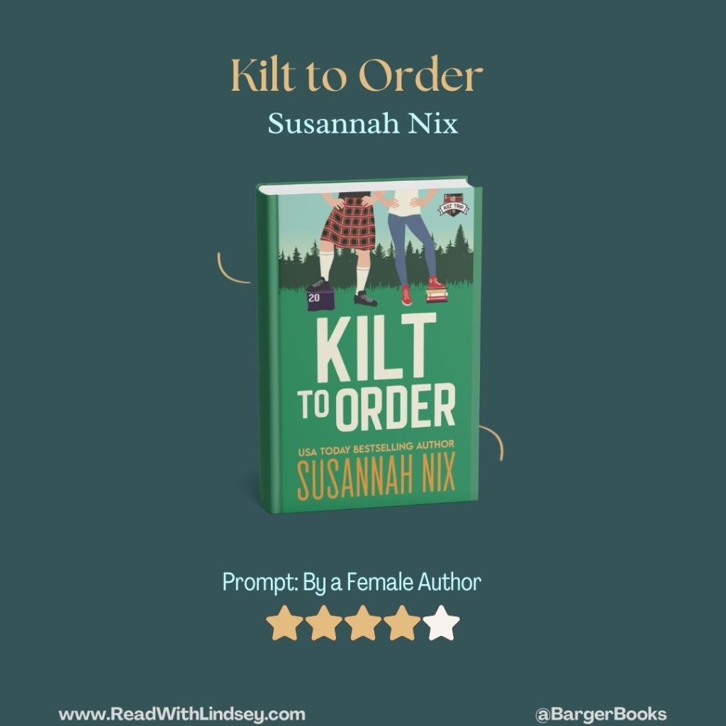 I chose Kilt to Order for the Read With Lindsey Reading Challenge prompt By a Female Author. I haven’t read many of Susannah Nix’s works so far, but have loved her romance books. I thought this would be a great choice for March with it’s green cover. There are so many great female authors on my shelves though. Who are you reading this week?