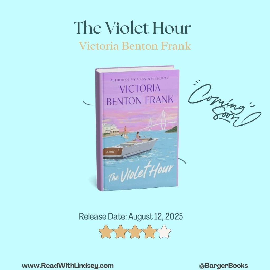 I was excited to see The Violet Hour available on Netgalley earlier this month. I met Victoria Benton Frank while she was on her initial book tour in 2023 and fell in love with her personality. She has such a following here in Atlanta that began with her mother’s friends and following, but has developed into her own. This was a fantastic book and I find myself hoping the author will release another book in this series soon!