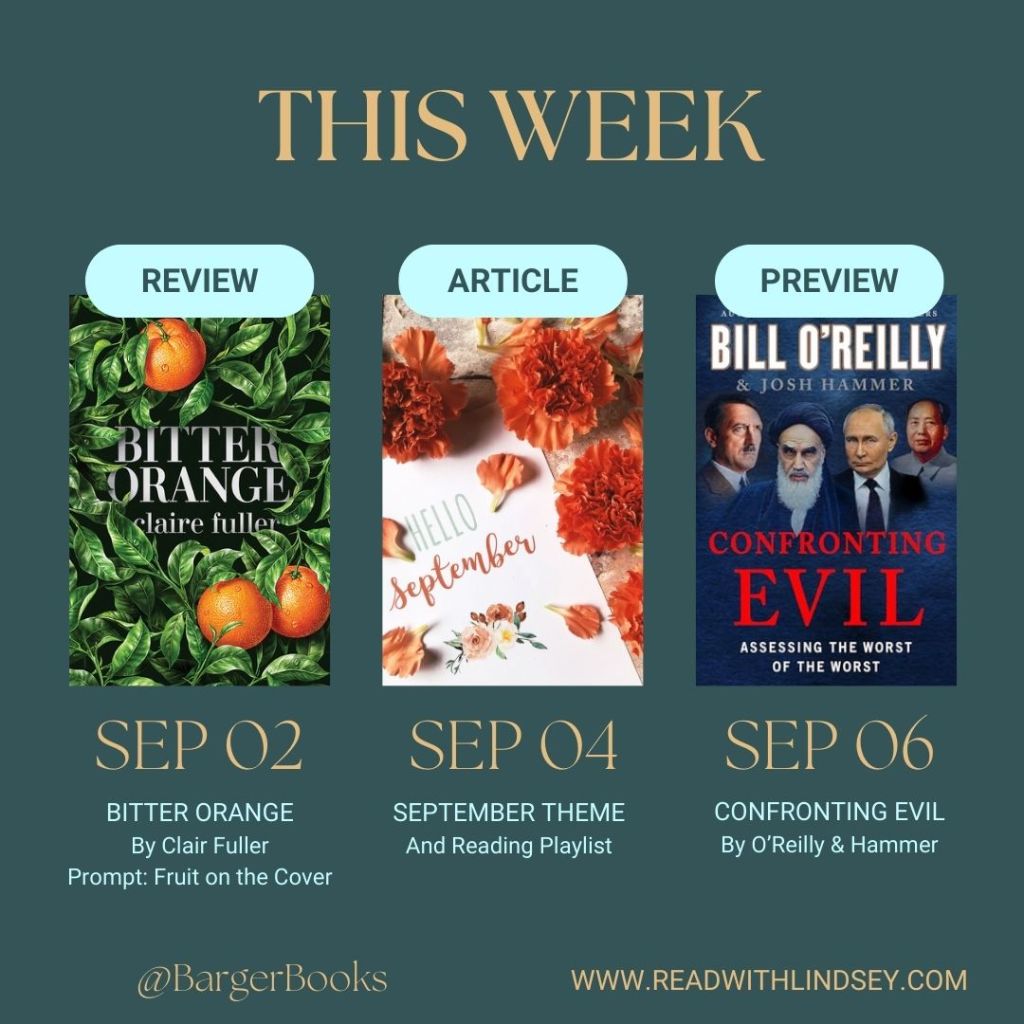 With the new month, comes a new theme – Orange! We will dive into that theme a little more with our post on Thursday complete with reading suggestions and a reading playlist. Our weekly theme has us reading books with fruit on the cover which is great for this month’s color! I couldn’t believe how many books had oranges on the covers! I’m also reading Bill O’Reilly’s newest – history and foreign policy buffs are going to love this one!