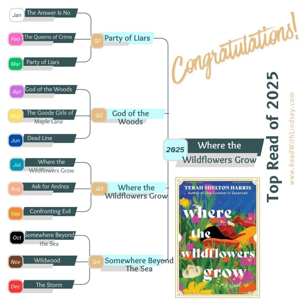 Now, without further delay, I’d like to officially congratulate Terah Shelton Harris and Where the Wildflowers Grow for being selected as the Read With Lindsey Top Book of 2025! This author has grown to become one of my favorites and this, her third release, will leave you in awe of her artistry. The novel champions self-healing elements like yoga and meditation while also showing the value of a strong support network to help pick you up on your worst days. It also showcases the author’s signature head-on approach to taboo subjects with a southern gothic twist, showing why Target chose Terah Shelton Harris as its inaugural Author of the Year. This book will transport you to the Alabama coastline and leave you longing for more time with Jackson and Leigh after the final pages!