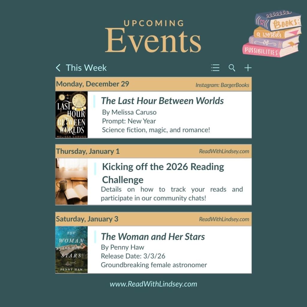 Happy almost New Year! We may be a few days early, but we will be starting our 2026 Read With Lindsey Reading Challenges today! If you haven’t already, connect with us on StoryGraph and join our Weekly or Monthly 2026 challenges!