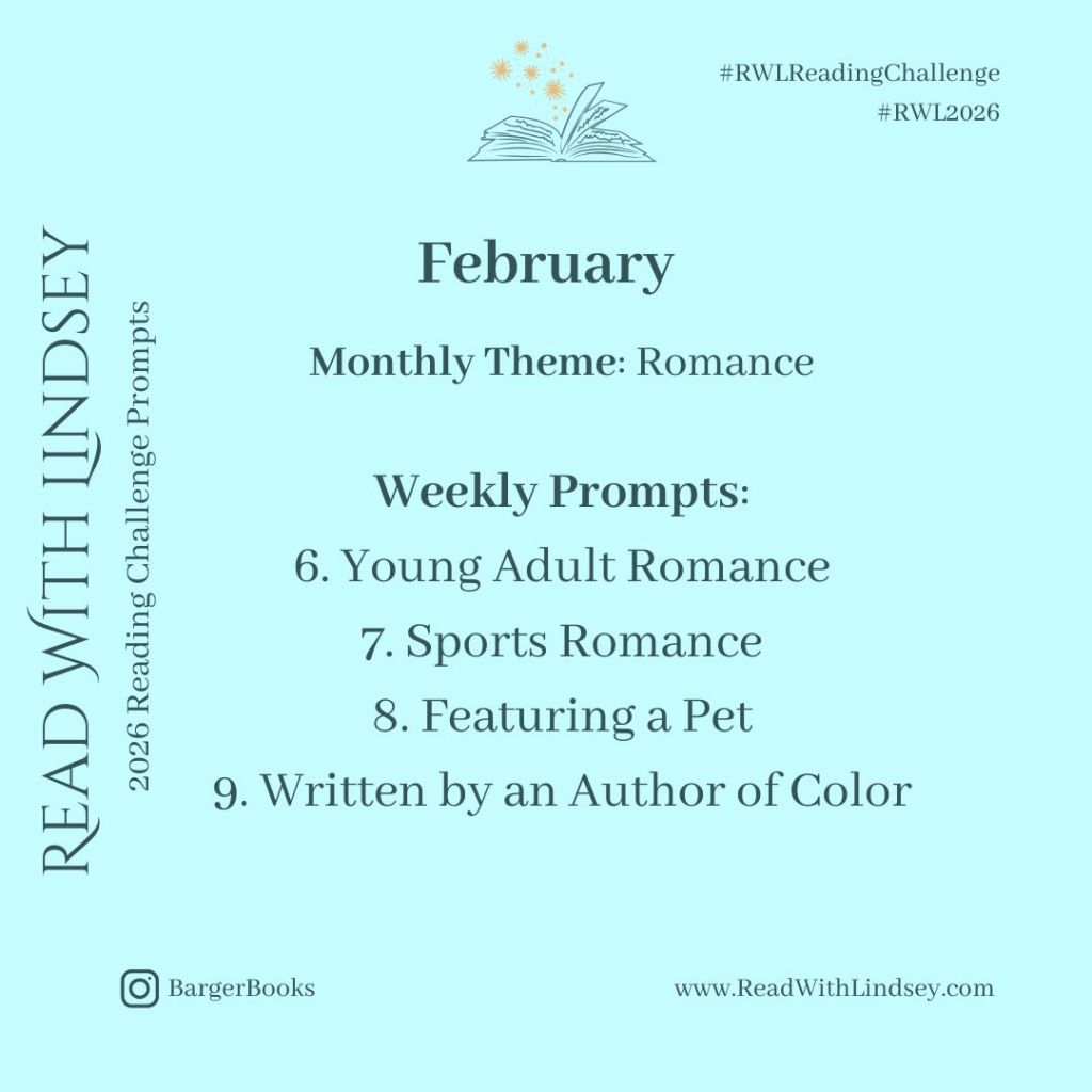 After one of my least favorite genres, we are swapping to one of my favorites – romance! I’ve especially loved sports-themed romances the past few years, and I’ll be reading one by a favorite author this month! There’s also nothing better than a meet-cute with a pet, so I included that, too. We are also honoring Black History Month by reading a romance by an author of color. Are there any prompts you’d add to the Romance category?
