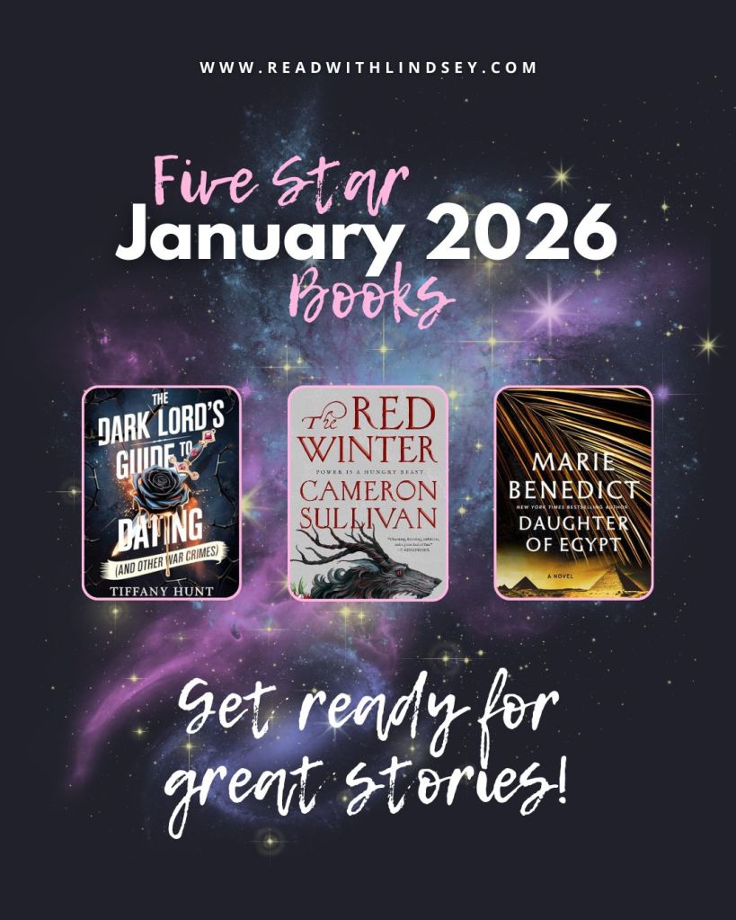 We had three fantastic 5-star books this month! Each of these books is set to come out in a few weeks and I know you will love them each for different reasons. The Dark Lord’s Guide to Dating (and Other War Crimes) delivers a snarky, grumpy-sunshine romance with some very steamy scenes. Daughter of Egypt shows the author’s signature take on powerful women of history you have probably never heard of. The Red Winter is that dark fairytale retelling perfect for fantasy romance lovers.
