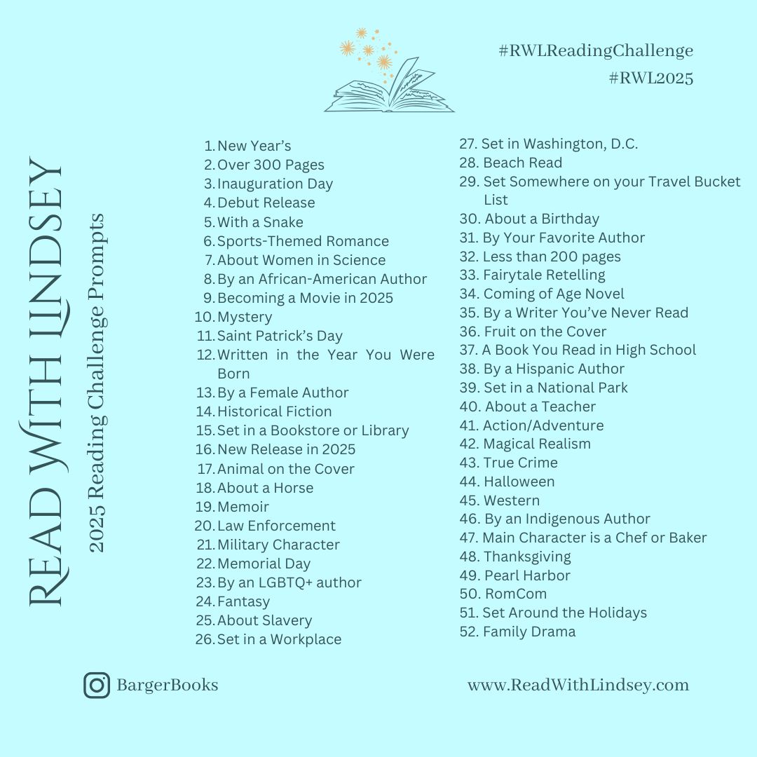 With just a few days left, I'm excited to share with you the full Read With Lindsey 2025 Reading Challenge prompt list! You will see a few prompts repeating from 2024 Challenge, but I'm happy to include a few new ones - they are some of my favorite genres! The Schedule As discussed a few … Continue reading 2025 Reading Challenge